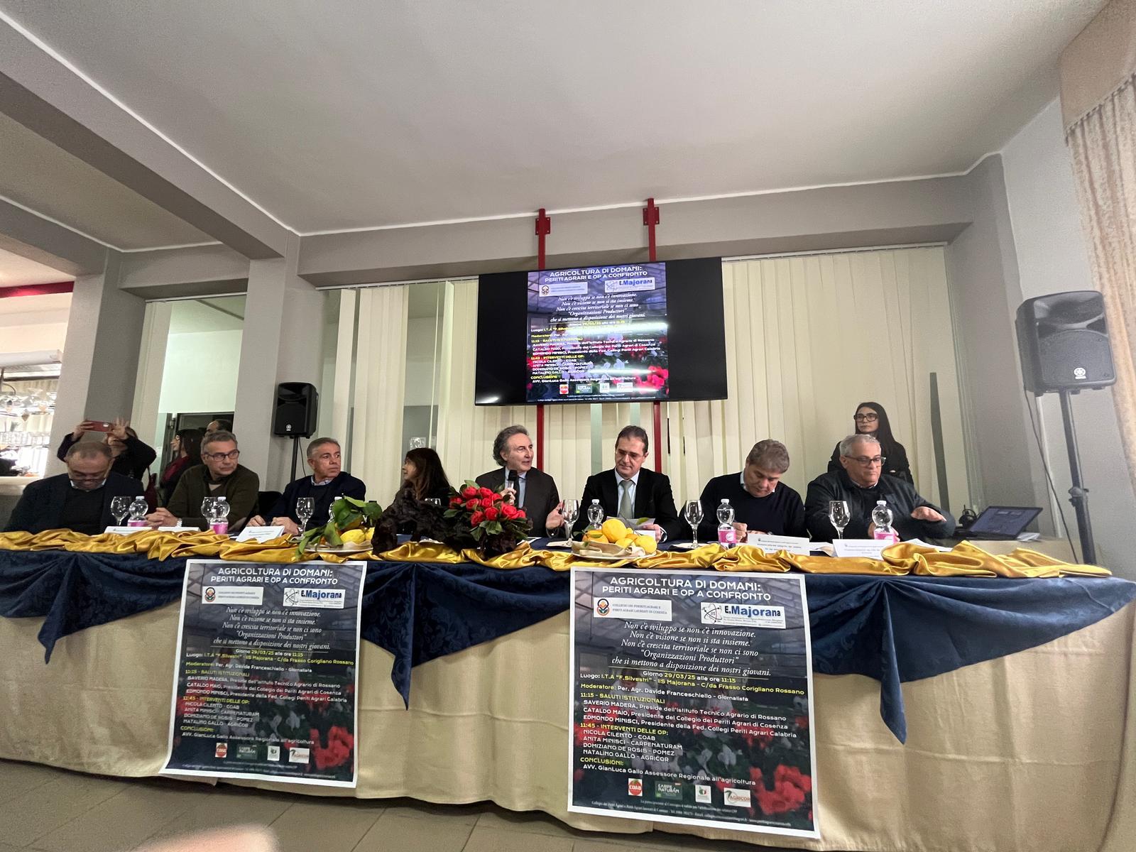 Dopo i saluti istituzionali del presidente Cataldo Maio che ha ribadito i concetti espressi durante l’approvazione del bilancio, del presidente della Federazione Collegi Periti Agrari Calabria, Edmondo Minisci che ha messo in evidenza “la forte integrazione tra Ordini professionali della Calabria e Istituti scolastici superiori, così con le OP, tutti uniti nel favorire il percorso di sviluppo del comparto agricolo calabrese attraverso la formazione dei giovani”. Il DS dell’IT Agrario Majorana, Saverio Madera ha sottolineato come “ci sia sempre più bisogno di queste giornate di confronto nell’interesse di tutto il territorio e soprattutto dell’agricoltura che si sviluppa nella Sibaritide. Un’agricoltura sempre più tecnologica che necessita di competenze specifiche spendibili sul mercato in accordo con il territorio di riferimento”. Il DS dell’I.T.S. Filangieri, Alfonso Costanza, ha palesato “l’esigenza di potenziare il settore agricolo attraverso la scuola, dalla quale parte la futura classe dirigente”.