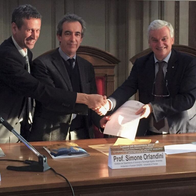 La presenza del Direttore del Dipartimento di Scienze e Tecnologie Agrarie Alimentari, Ambientali e Forestali (DAGRI), Professor Simone Orlandini, e del Presidente del Collegio Nazionale dei Periti Agrari e Periti Agrari Laureati (CNPAPAL), Per. Agr. Mario Braga, ha consentito la sottoscrizione della convenzione tra DAGRI e CNPAPAL, convenzione che riconosce reciproci benefici nell’ambito della formazione e crescita professionale di studenti, tirocinanti e liberi professionisti. |